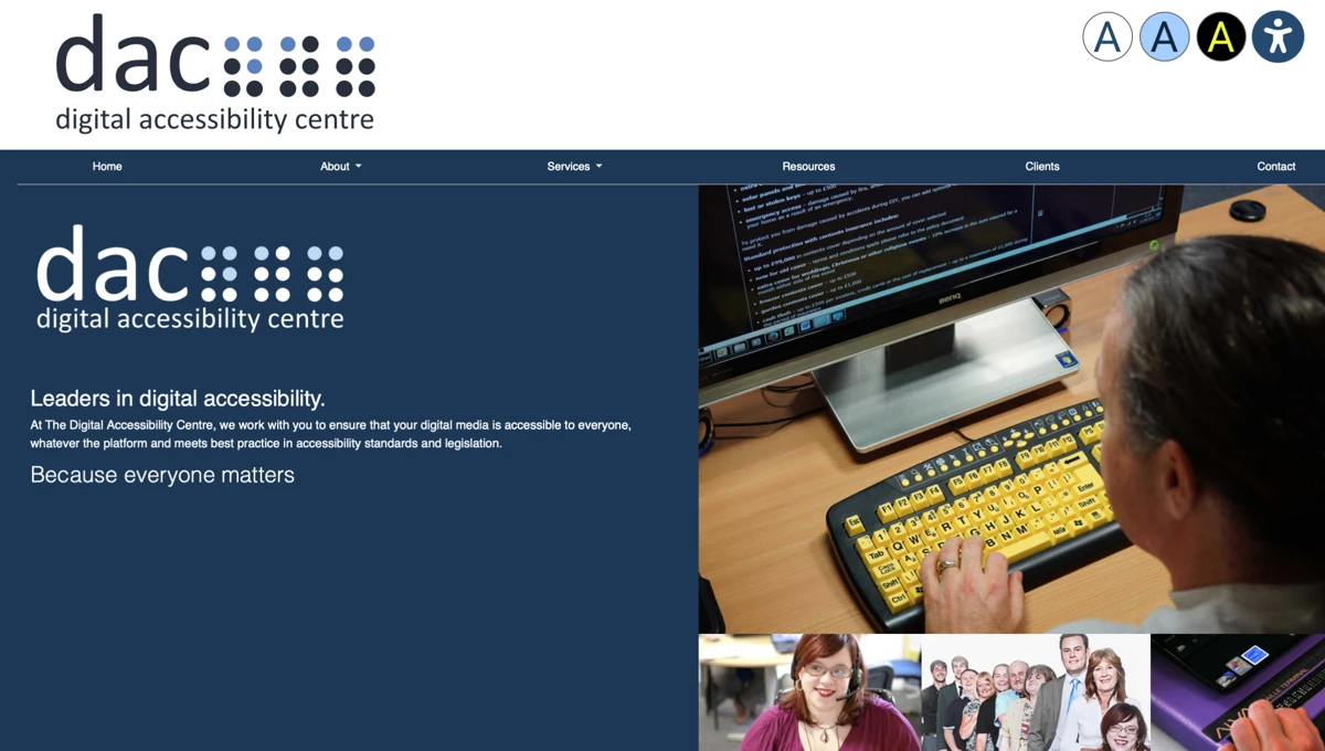 Putting their money where their mouth is, The Digital Accessibility Centre (DAC) website is one of the strongest accessible website examples. The company provides a comprehensive set of web accessibility resources and guidelines, making them a go-to for web designers and developers and a trusted source-of-truth for clients such as the NHS, UK government and several UK banks.