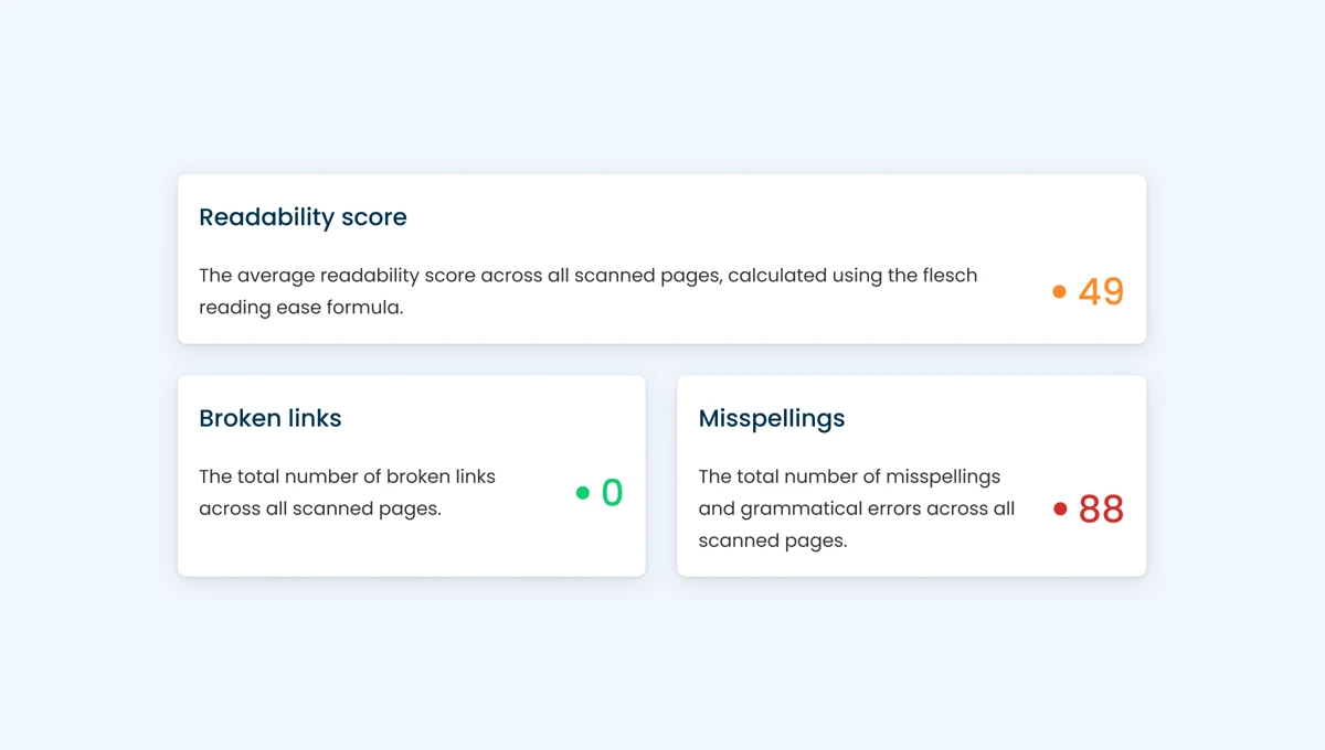 As well as providing closed captions and audio descriptions for multimedia content, it is advised to use clear and concise language when writing a website's content. To make life easier, accessibility and content quality web tools such as Insytful provide readability checks and scoring. Grammar and misspellings are frequently identified pain points for accessibility.