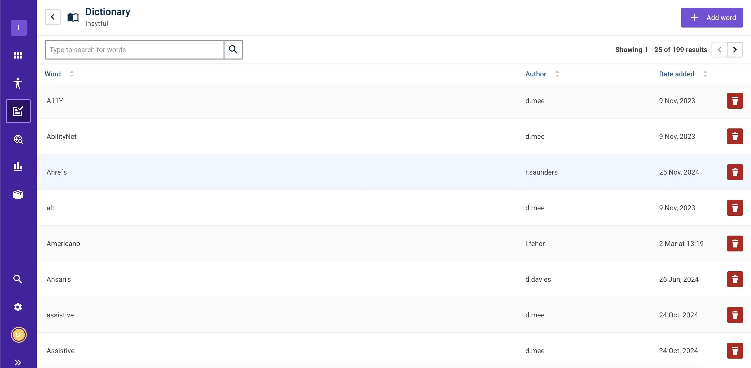 Words in your dictionary now show the date they were added and the author so you can easily see who and when added each word.