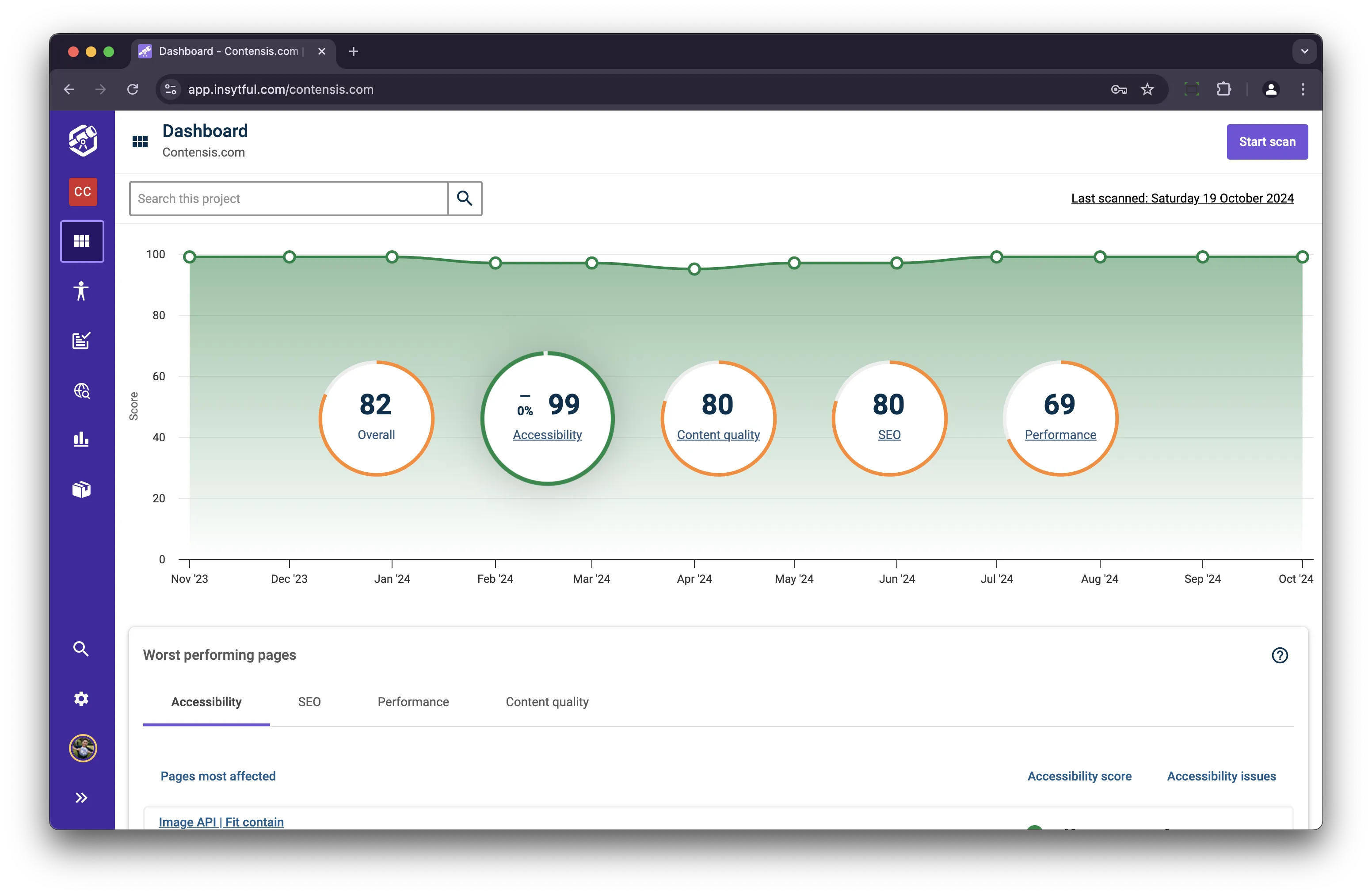 Improve your web accessibility, and get the first 100 pages scanned for free.